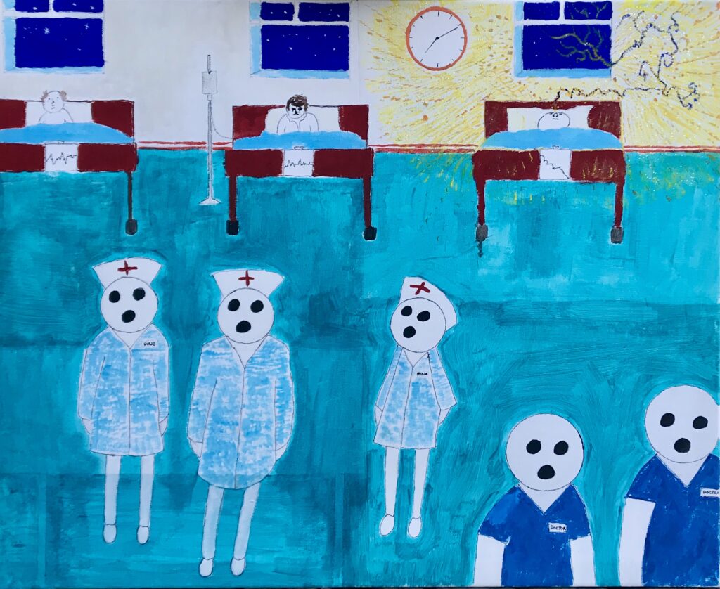 In 2022, I was fully immersed in the University of Glasgow’s End of Life Studies MSc. Programme. The module entitled Cultural Representations of Death and Dying invited me to create a unique, artistic representation of the end of life. I chose to create a painting depicting the death of my dad (See below). He died in 2014, in hospital, as the majority of people still do in the UK. I found the process of painting his death to be a deeply moving experience; an experience which formed the basis for my later MSc Dissertation exploring social death in hospitals.